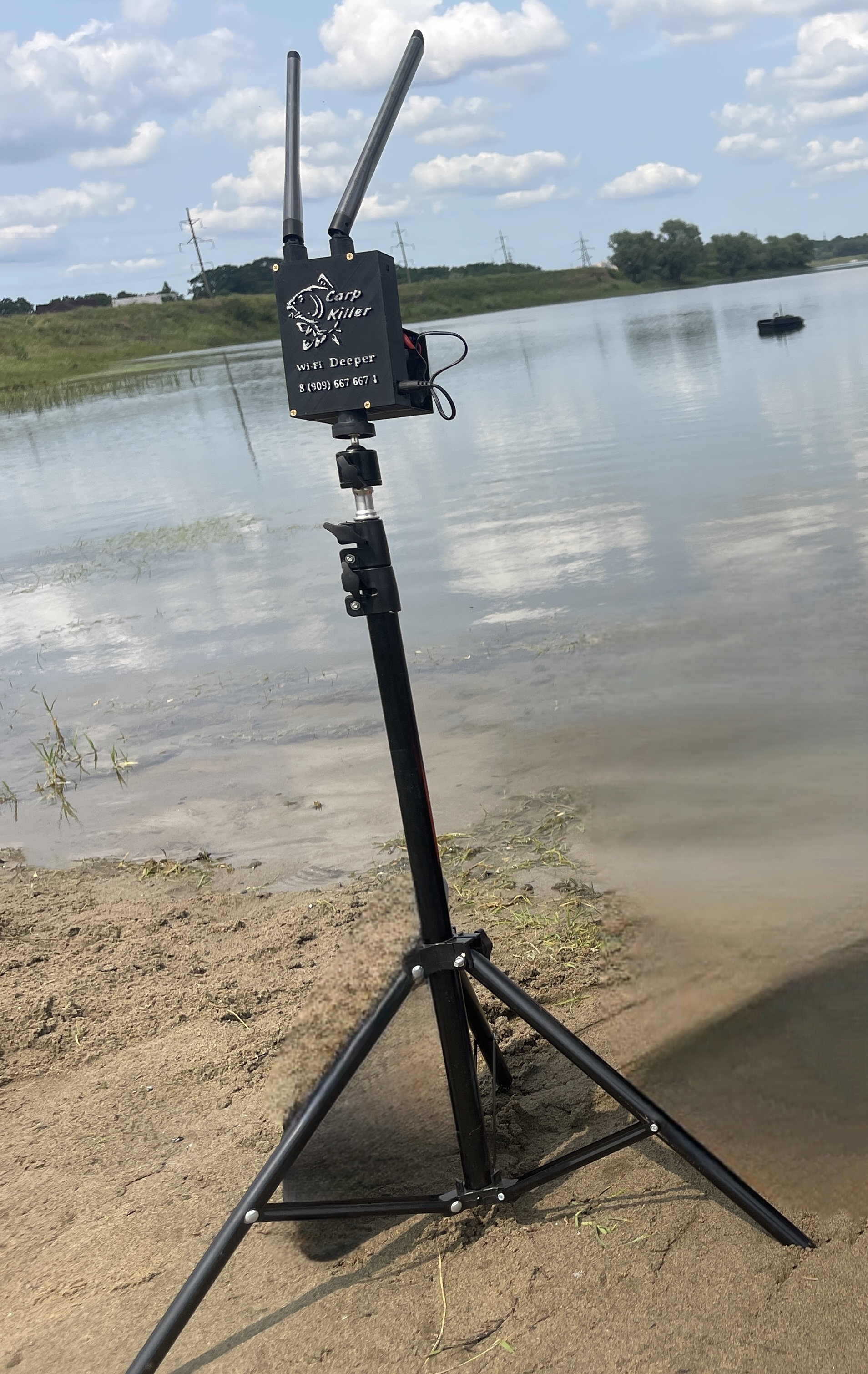 Усилитель сигнала Wi-Fi по типу мост для эхолотов deeper. В комплект входит, усилитель береговой, усилитель для установки в корабле, штатив, две батареи 3s на 4000м/ач.